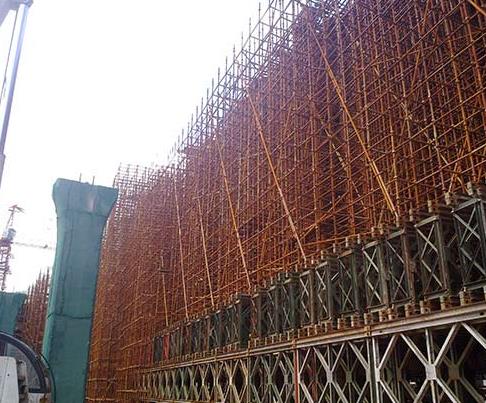 4、承载能力大:河南轮扣脚手架租赁厂家表示轮扣多功能钢管脚手架立杆轴线与横向杆轴线垂直交叉较高,力学性能合理。因此,承载能力大,整体刚度大,整体稳定性强,允许各垂直杆承载3吨和4吨。而斜拉杆的数量远小于传统脚手架。